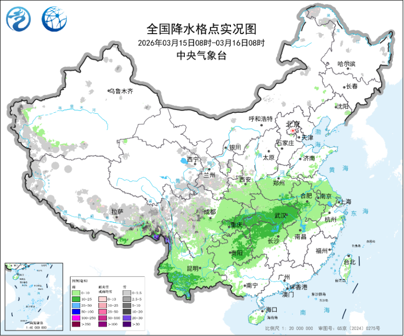 未来三天(3月16日至18日),南方多阴雨天气,西南地区东部到长江沿线有中到大雨,受降雨影响,气温难有起色,维持偏低状态。