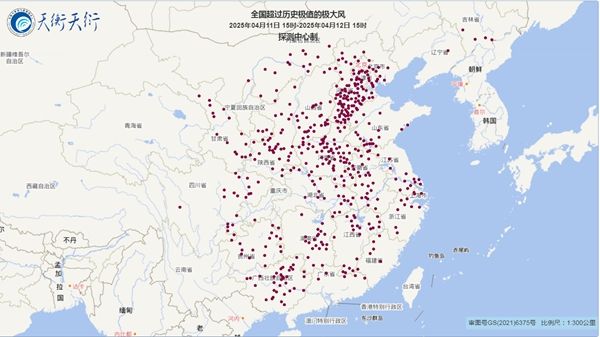 截至15时,全国493个国家观测站打破4月同期极大风纪录。
