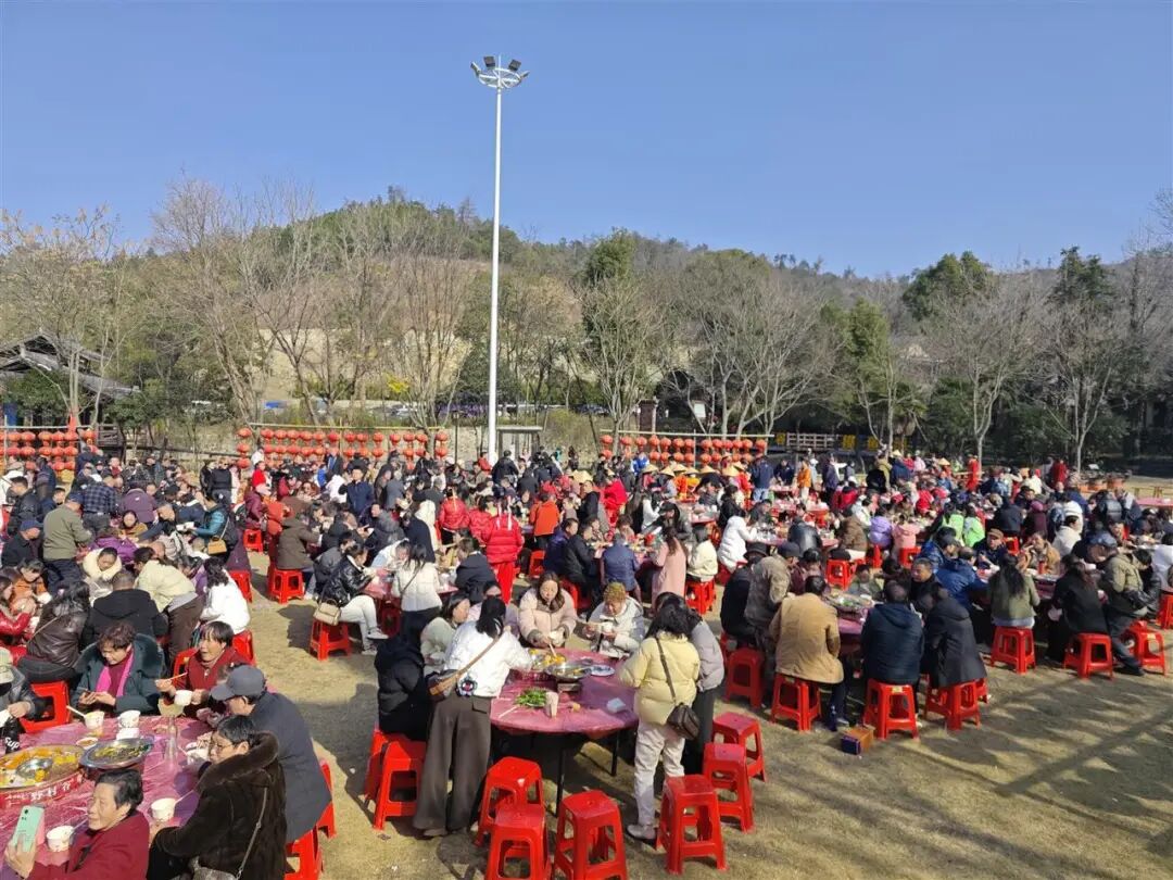 此次活动不仅吸引了武汉本地游客,更辐射到黄石、黄冈、鄂州等周边城市,甚至有不少河南、安徽的游客慕名而来。大家在热气腾腾的宴席中品尝乡土美味,在丰富多彩的民俗活动中感受传统年味,在欢声笑语中共度元旦佳节,沉浸式体验乡村旅游的独特魅力。来自河南信阳的李女士带着十口之家专程驱车赶来,刚吃完宴席的她难掩兴奋:“1000多人围坐在一起吃年猪宴,比过年还热闹!孩子们第一次看抬年猪、体验打糍粑,还买到了新鲜的土猪肉和手工豆丝,这趟来得太值了!”