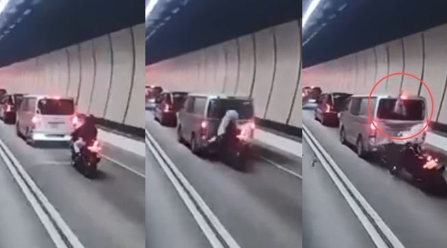 【环球网报道 记者 徐思琦】据香港文汇网、星岛头条网等港媒2月3日报道,香港大老山隧道内当日发生一起惊险的车祸事故:一辆轻型货车在隧道内往沙田方向行驶,后方摩托车疑似因刹车不及撞向该辆货车车尾,骑手从货车尾窗甩入车厢中。