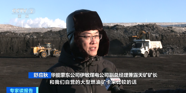 华能蒙东公司伊敏煤电公司副总经理兼露天矿矿长 舒应秋:效益很明显,和自营的大型燃油矿卡相比,无人电动矿卡出一吨煤能够省5元多。拉一车煤大约是50吨,能省260元。极端天气下,比如降雪、起雾,能见度低于50米的时候,有人驾驶就要停止作业,但是无人电动矿卡可以不间断运行,前期这些投入和煤矿安全生产比起来都是值得的。