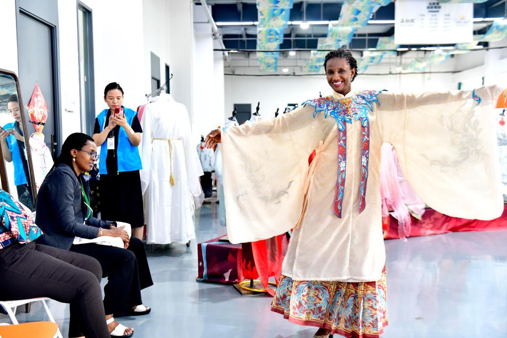 肯尼亚时装模特尼亚夸尔·约翰对此深有感触。她与曹县马面裙的缘分,始于一次偶然的社交媒体“刷屏”。“初次见到马面裙时,它看上去融合了多种文化元素。穿法也很特别,深受模特群体欢迎。”后来,她曾两度穿马面裙走秀,反响很好,“以后我还会继续穿”。